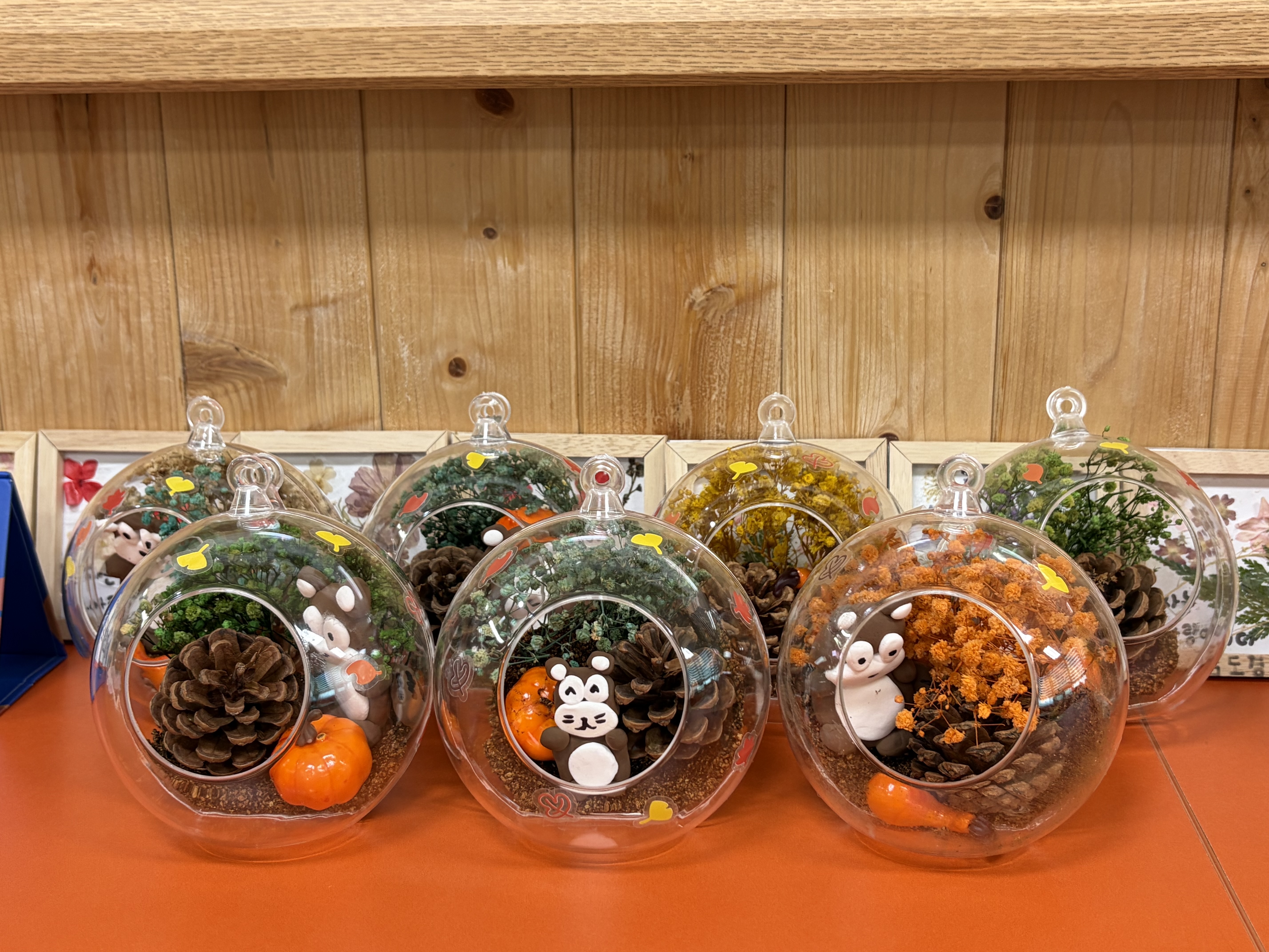 오늘은 어르신들과 가을에 어울리는 솔방울, 다람쥐,프리저브드 꽃등을 이용하여 테라리움을 만드는 시간을 가졌습니다.