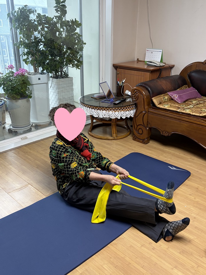세라밴드 운동으로 상·하지 근력 및 지구력 향상을 도모하였으며