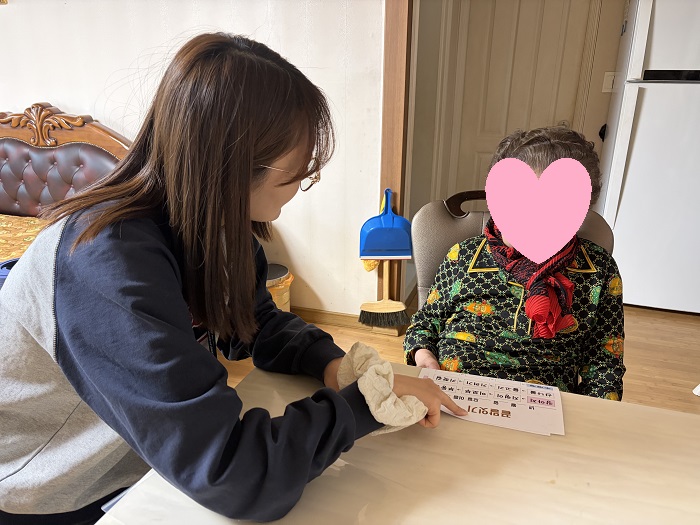인지자극을 위해 끝말잇기와 숨은 낱말 찾기를 진행하고