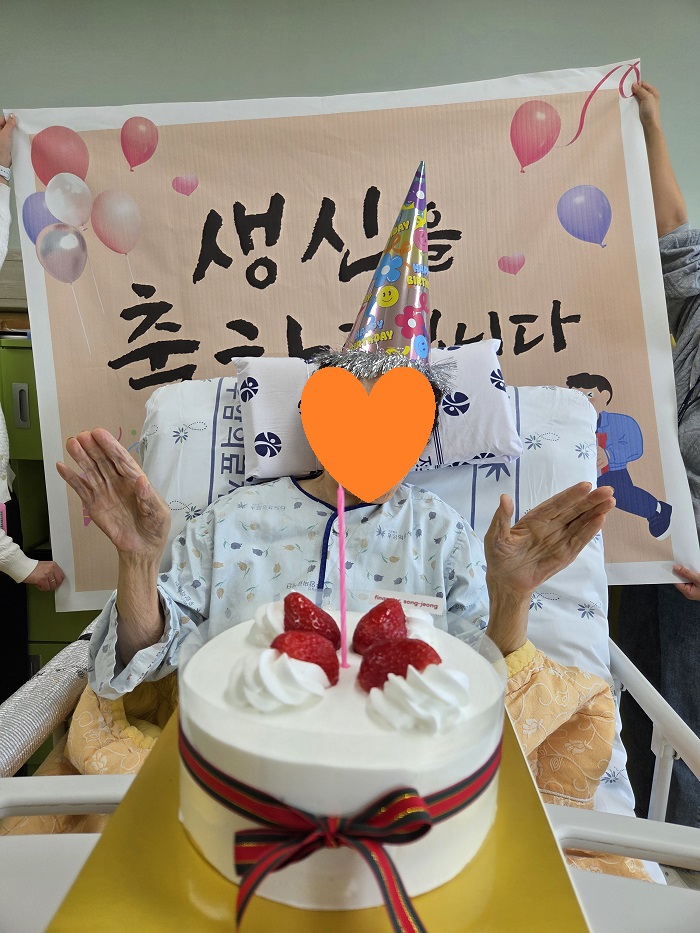 각 병동별 생신을 맞이하신 어르신들과 병동 어르신들이 한자리에 모여 생일축하 노래를 부르고, 촛불을 함께 끄며 따뜻한 축하의 시간을 가졌습니다. 이후 준비한 케이크를 함께 나누어 드시며 웃음과 정이 가득한 시간을 보냈습니다.