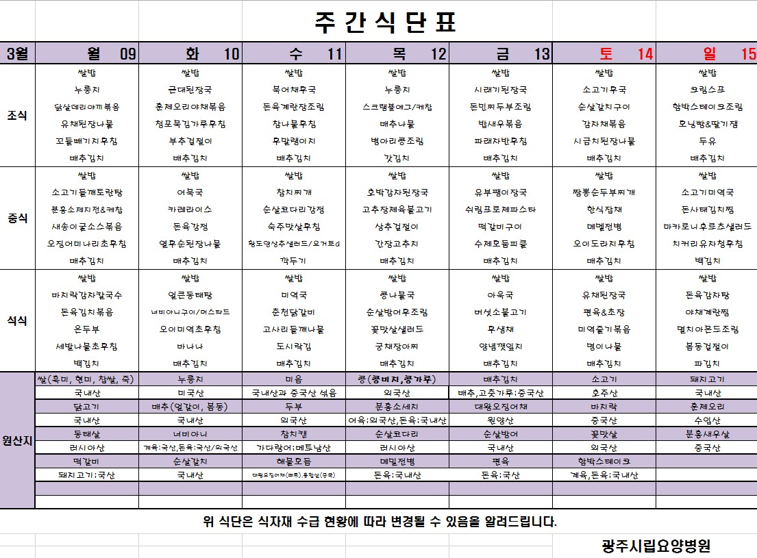 [2026.03.09~2026.03.15 식단표]