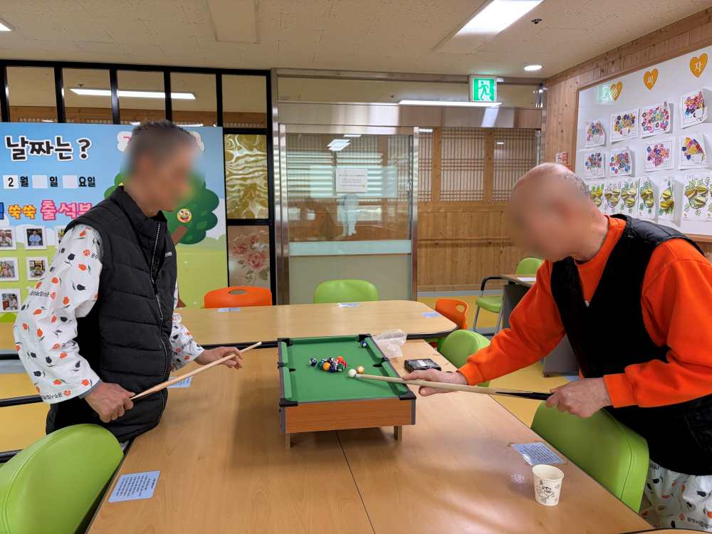 오늘은 두명의 어르신과 당구게임을 진행하였습니다.