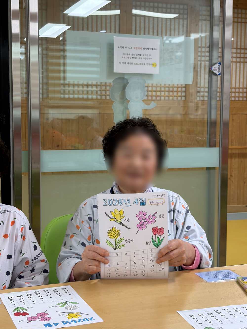 어르신들과 함께 달력을 색칠하고 완성하며 즐거운 시간을 보냈습니다.