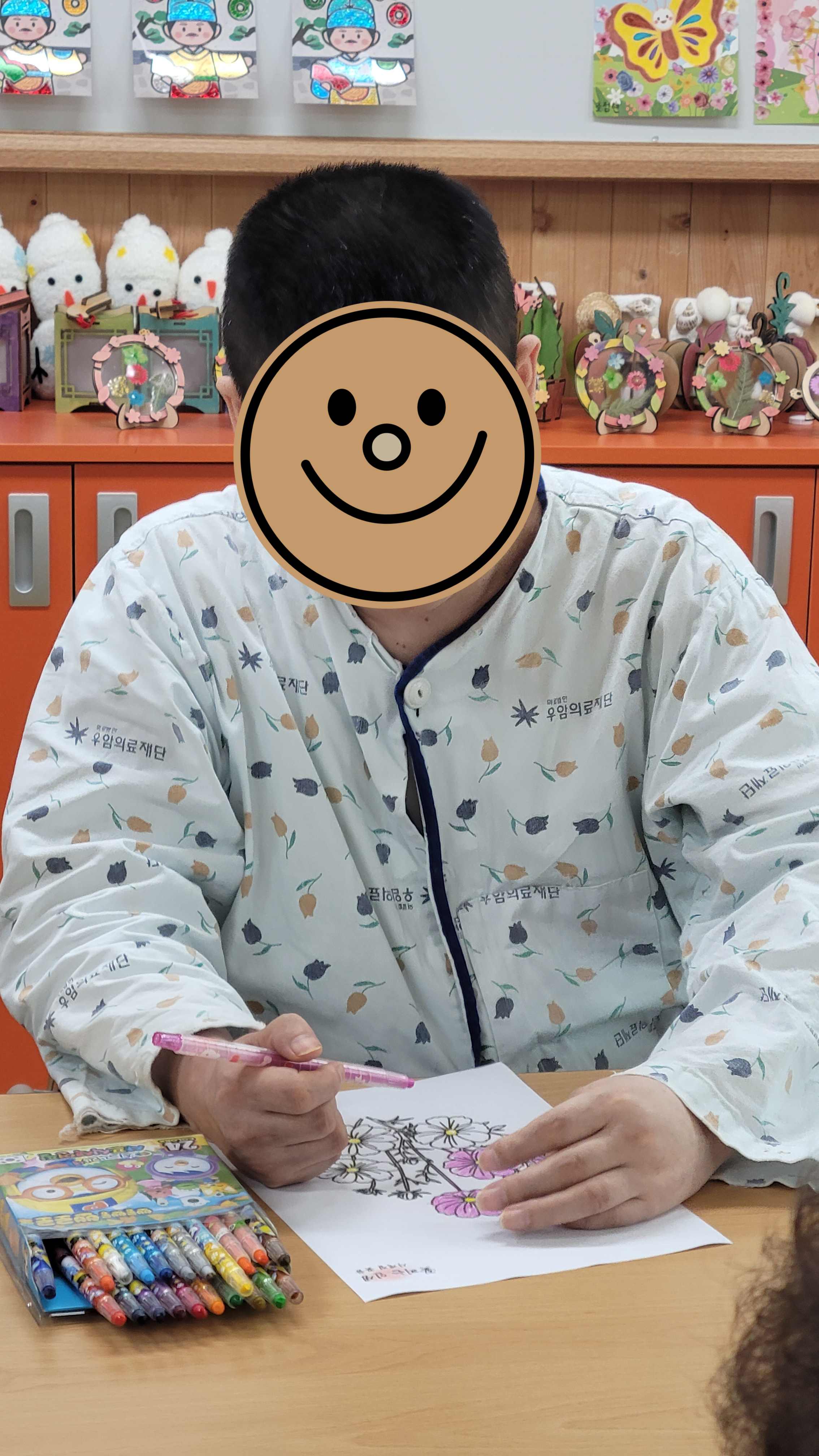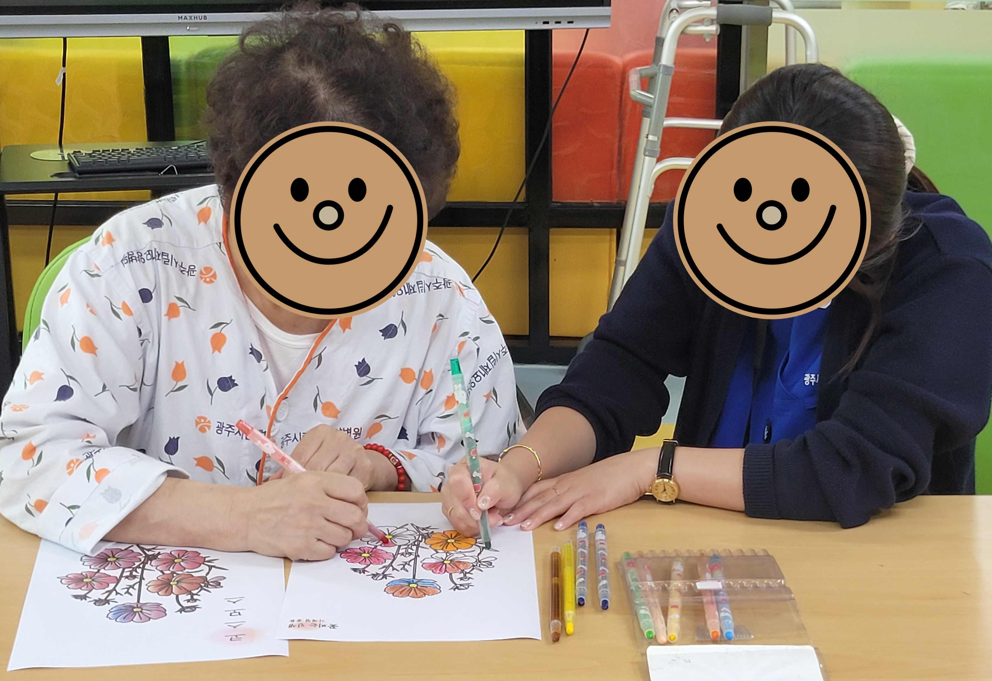 활동 후에는 신나는 분위기 속에서 코스모스 꽃을 색칠하며 각자 자신만의 아름다운 코스모스를 완성하셨습니다.