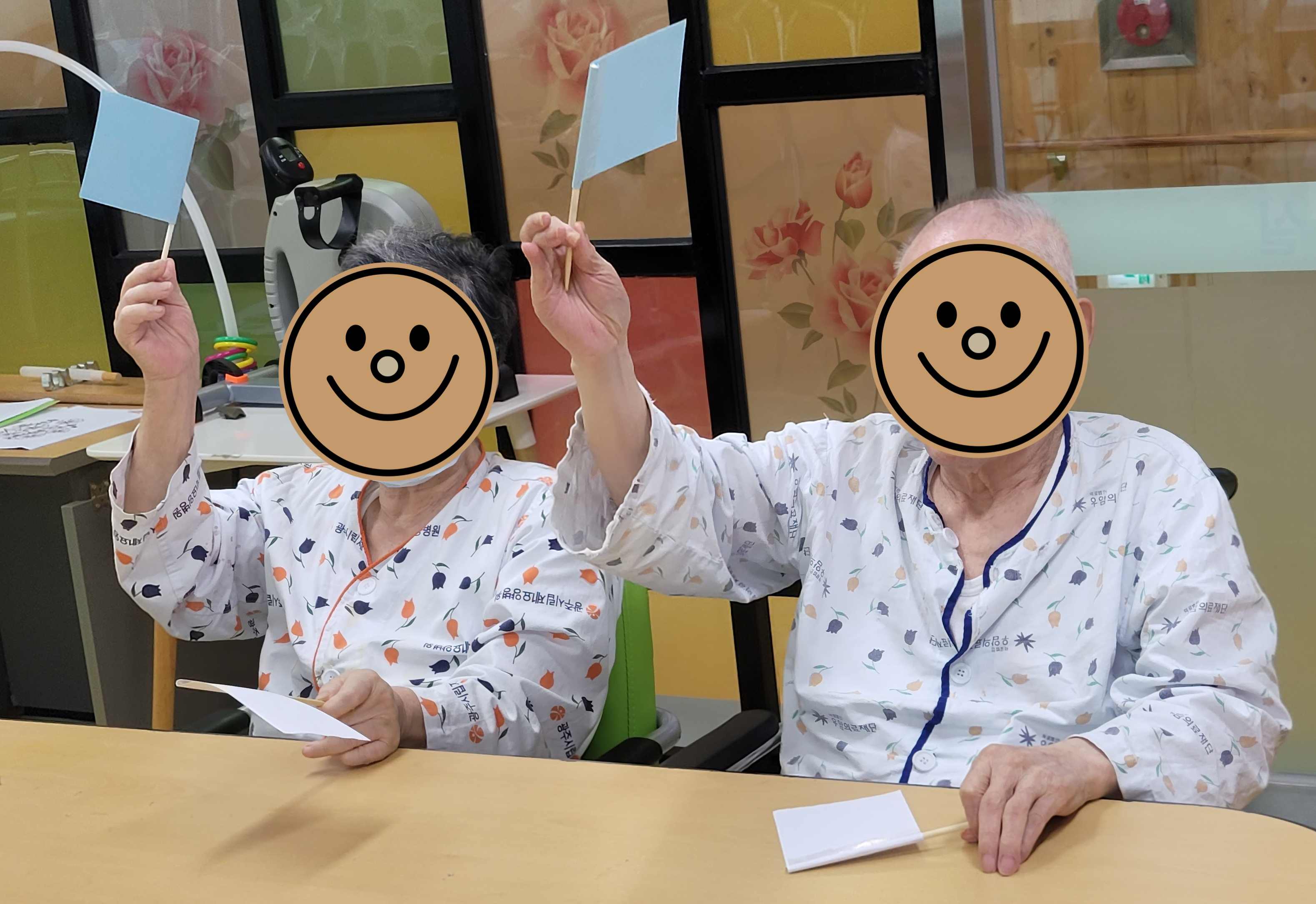 오늘은 어르신들과 함께 청기백기 올리기 활동으로 프로그램의 시작을 즐겁게 열었습니다.