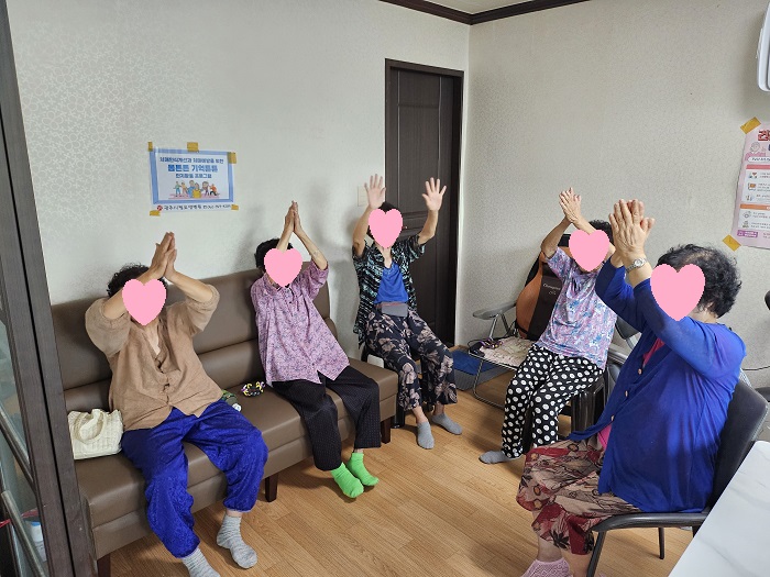간단한 동작에 음악을 더하니 자연스럽게 흥이 나고 어르신들의 얼굴에도 환한 미소가 번졌습니다.