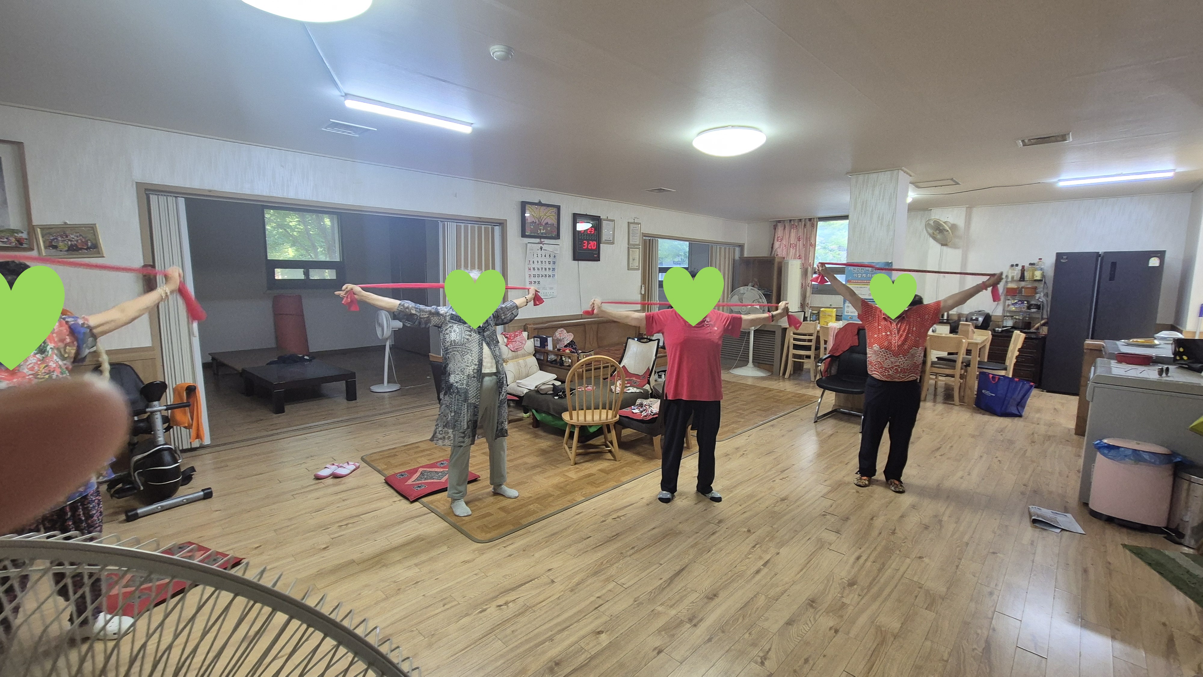 세라밴드를 활용한 근력 운동을 진행 하였습니다. 힘들지만 어르신들이 제일 좋아하는 운동 입니다