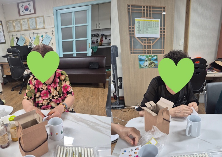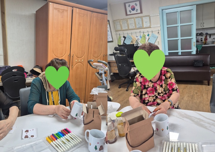 이후 인지활동 프로그램으로 나만의 컵 만들기 활동을 진행했습니다.