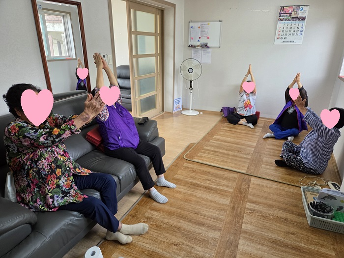음악에 맞춰 가벼운 스트레칭으로 몸을 풀어준 후 인지활동 프로그램을 진행하였습니다.