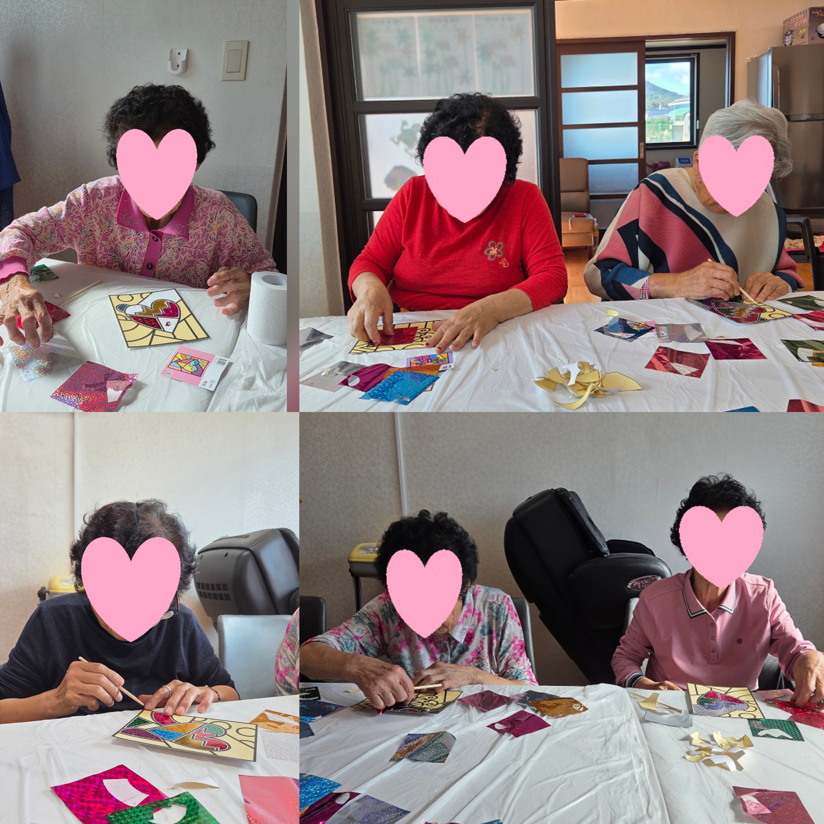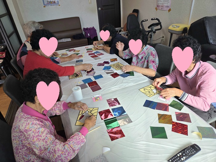 오늘은 먼저 건강박수와 뇌신경체조를 진행한 후 '포일아트' 활동을 함께 하였습니다.