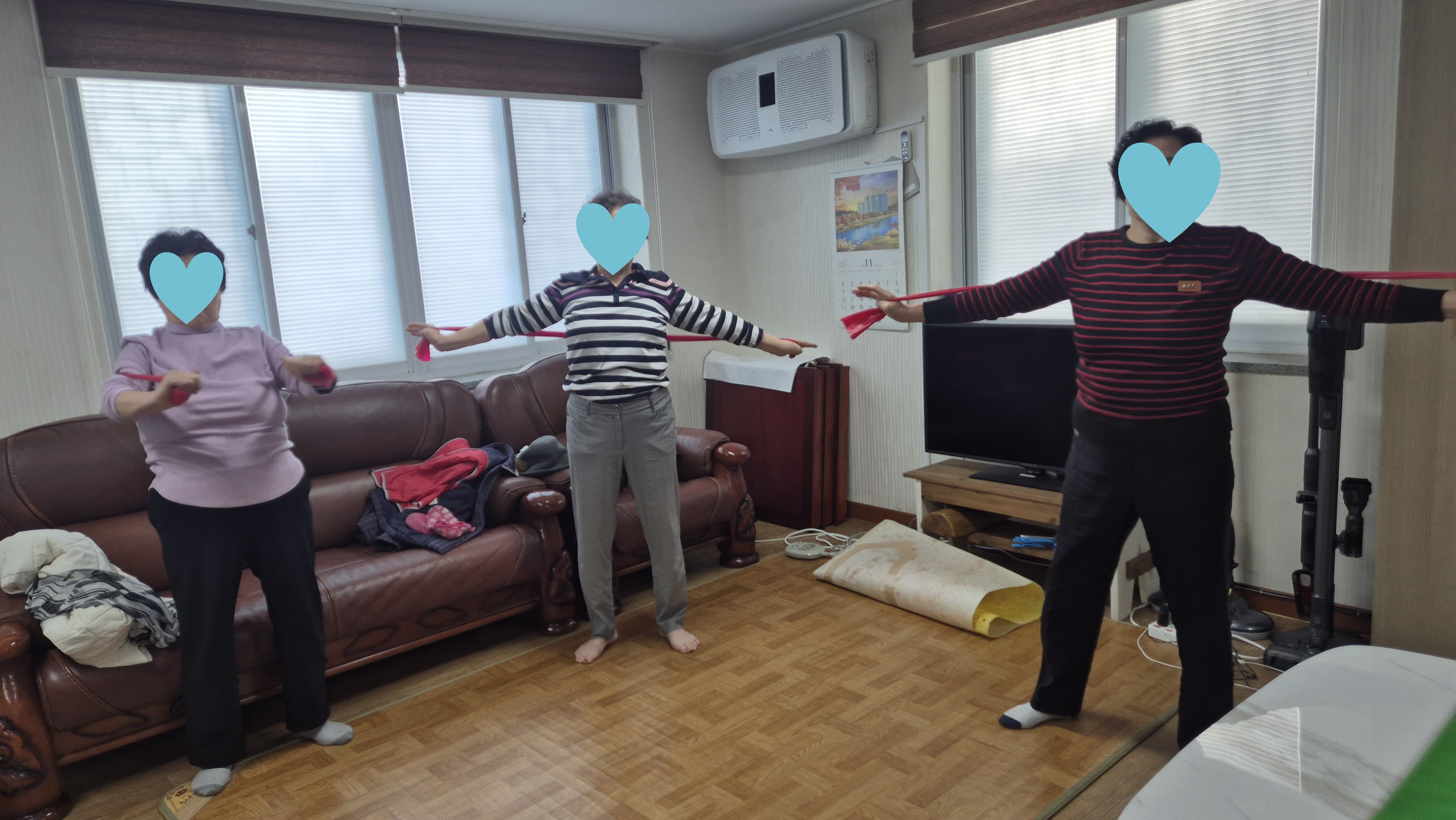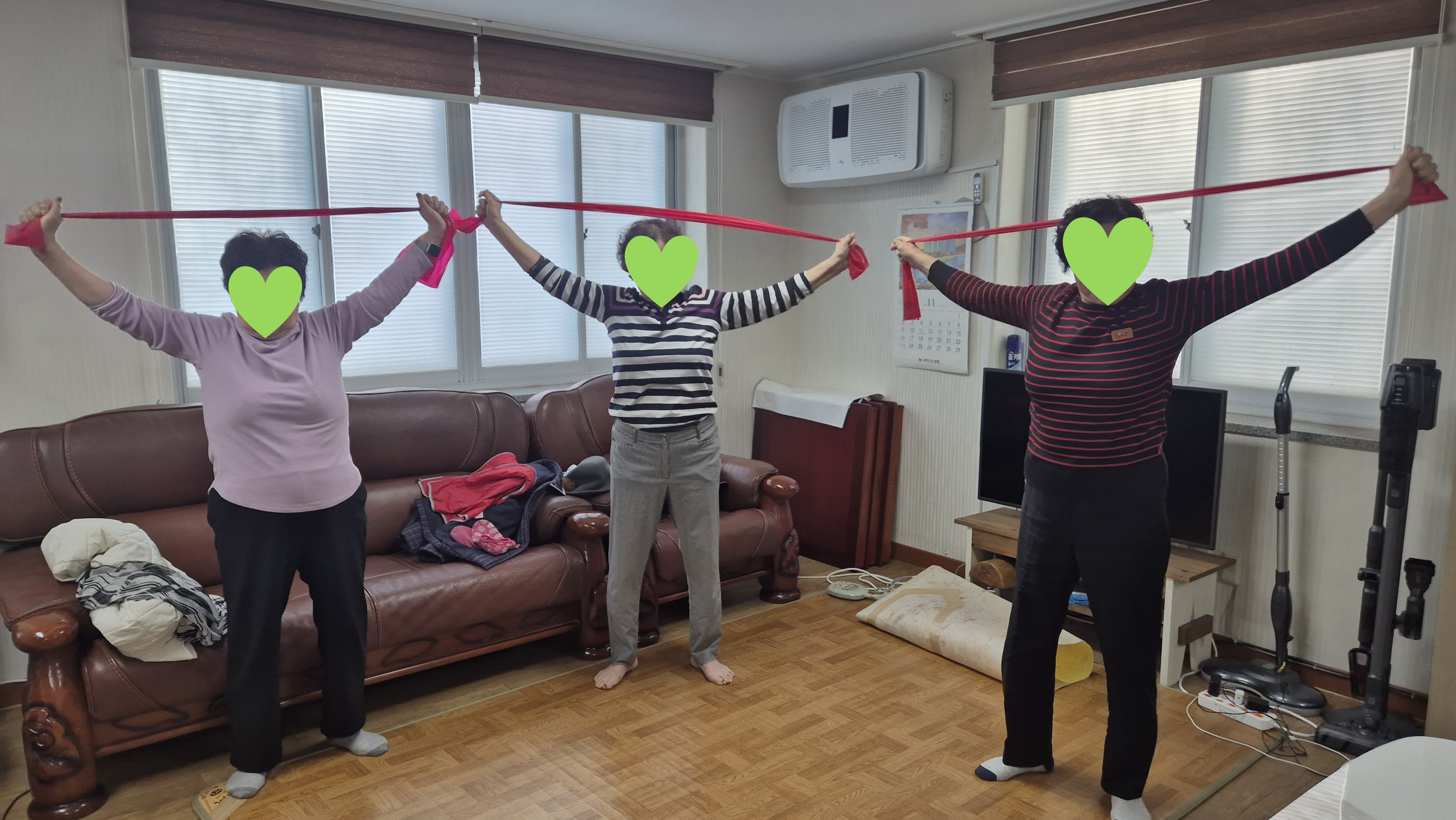 가볍게 스트레칭을 한 후 세라밴드를 활용한 다양한 근력운동과 낙상예방활동을 진행 하였습니다. 낙상예방을위한 교육은 어르신들께서 많은 도움이 되신다고 만족해 하셨습니다