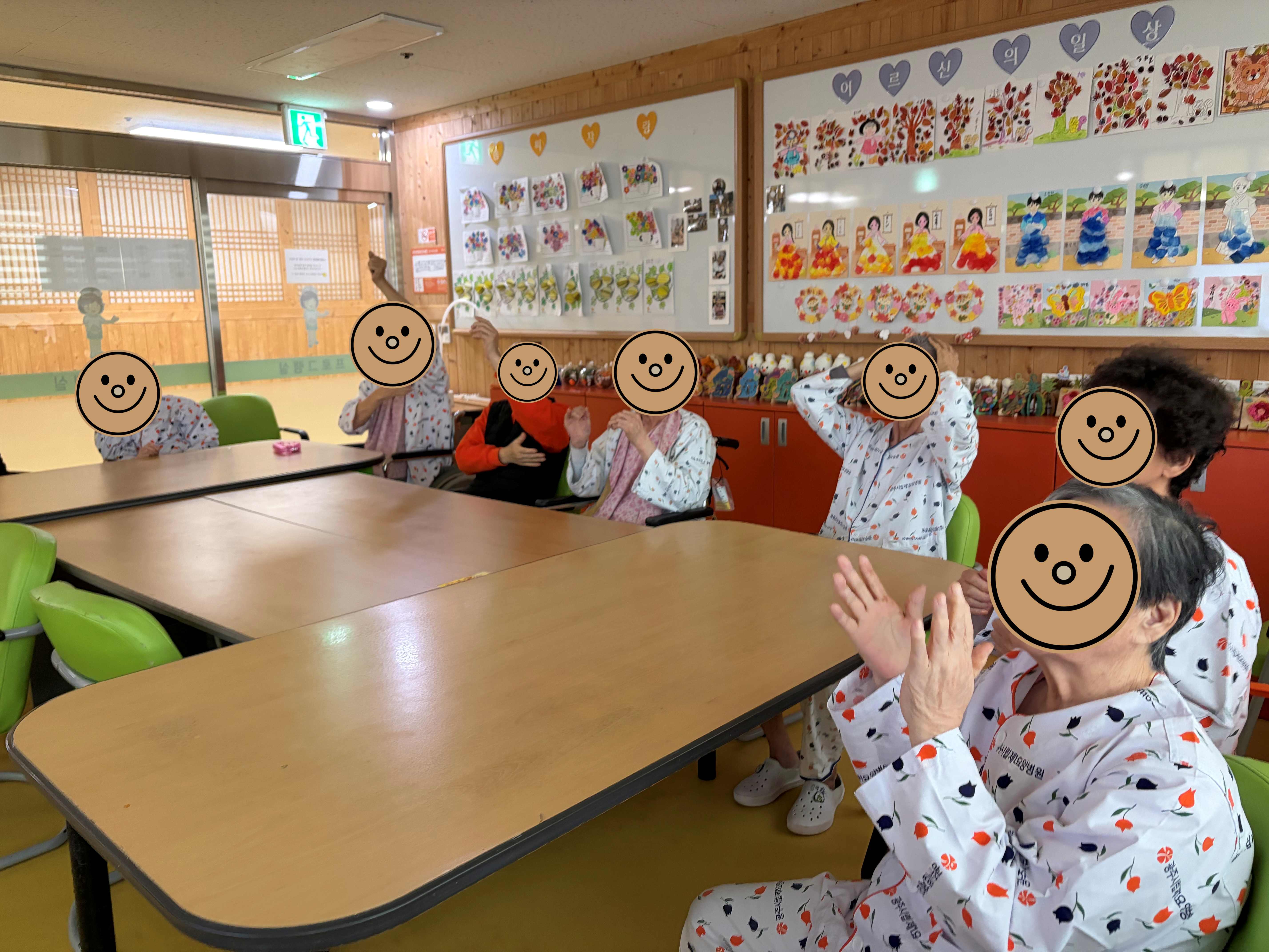 어르신들께서는 방송을 함께 시청하며 익숙한 노래를 따라 부르고, 서로 박수치며 즐거운 시간을 보내셨습니다.
