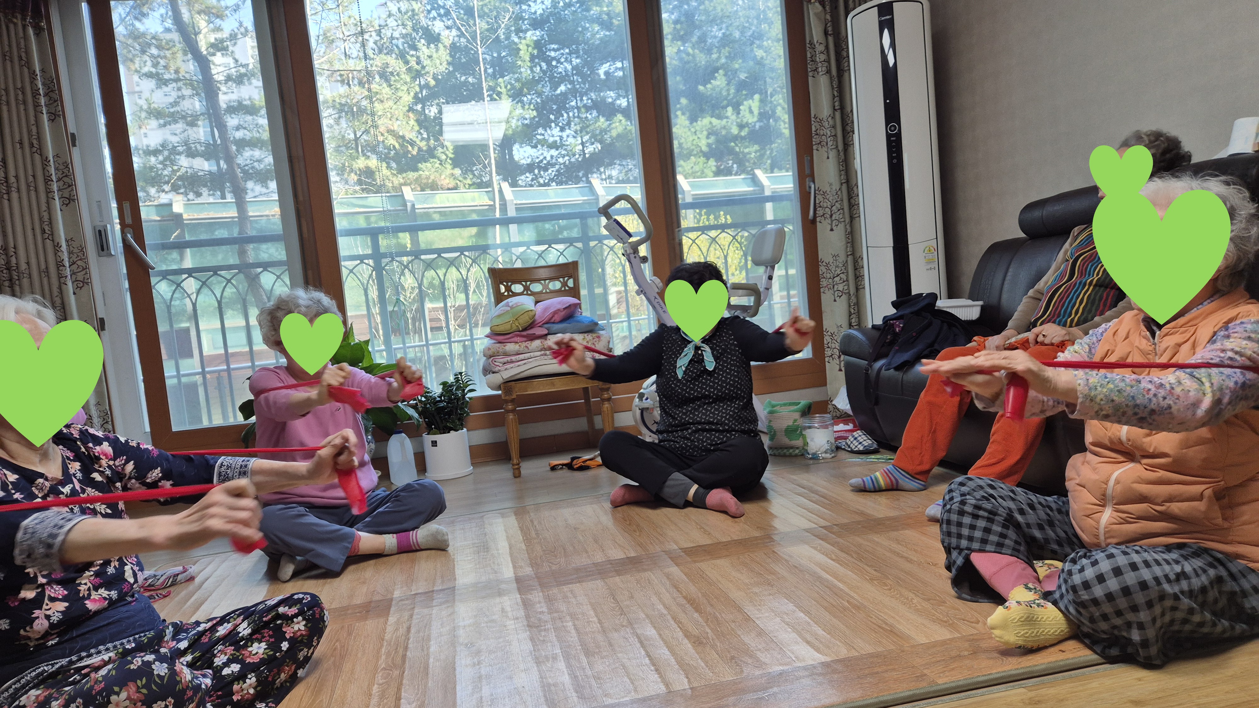수완 중흥2차 아파트 경로당에서 진행한 '두뇌튼튼 기억활짝' 치매예방 프로그램 입니다. 세라밴드를 활용한 다양한 활동은 근력강화, 관절가동법위 증진, 균형감각개선 낙상예방에 매우 효과적인 운동입니다. 낙상예방을위한 교육은 어르신들의 일상생활에 많은 도움이 됩니다