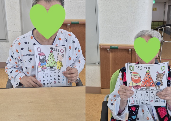 어르신들이 날짜를 채우는 활동, 숫자를 쓰며 손운동+인지기능, 요일과 날짜개념을 다시 떠올리며 시간 감각 유지 및 하루 구조화에 도움이 됩니다