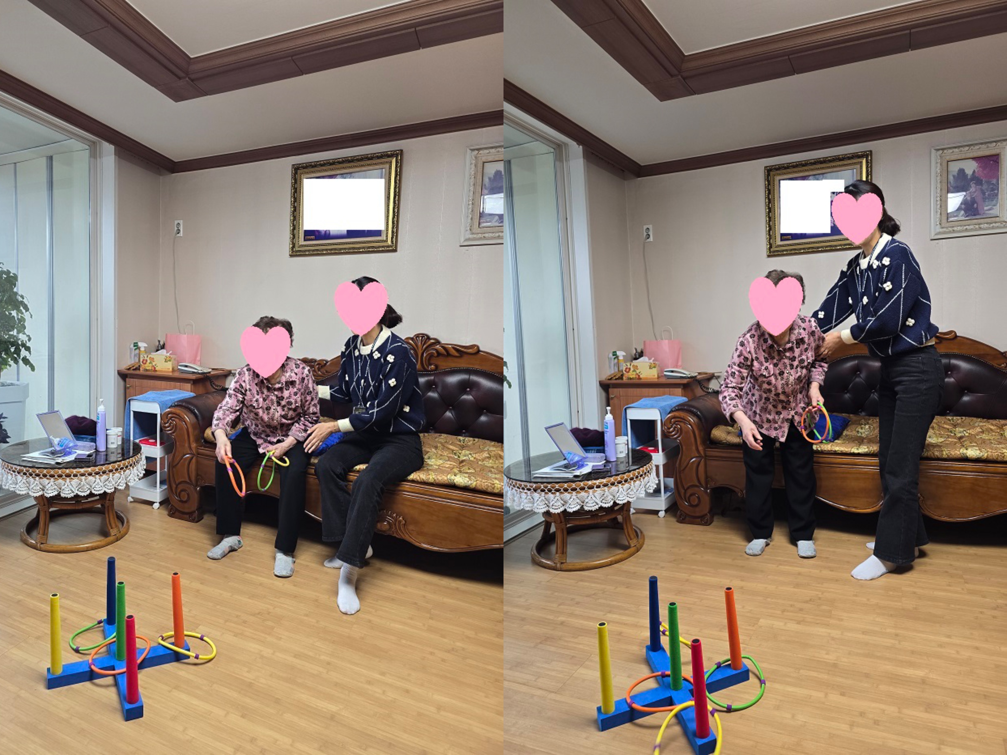 마지막으로 앉은 자세·일어선 자세 고리던지기 활동을 통해