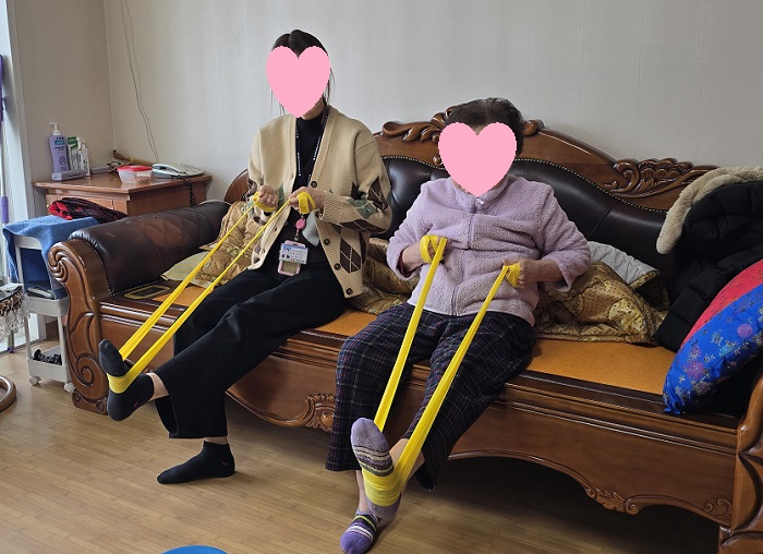 스트레칭과 세라밴드 운동으로 신체 기능을 강화하였으며