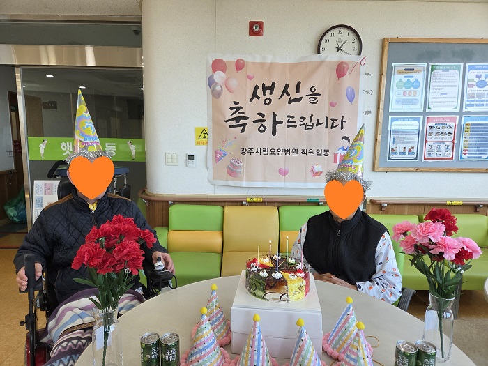 광주시립요양병원에서는 어르신들의 뜻깊은 생신을 기념하기 위해 생신잔치를 마련하였습니다.
