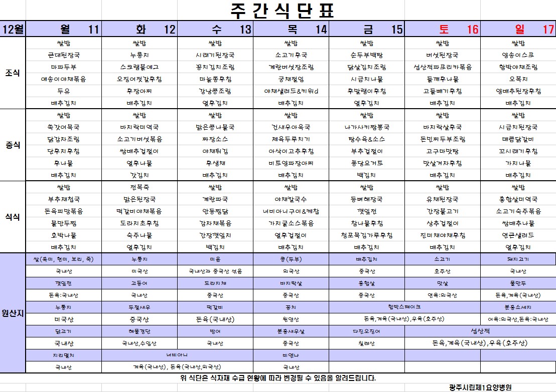 [2023.12.11~2023.12.17 식단표]