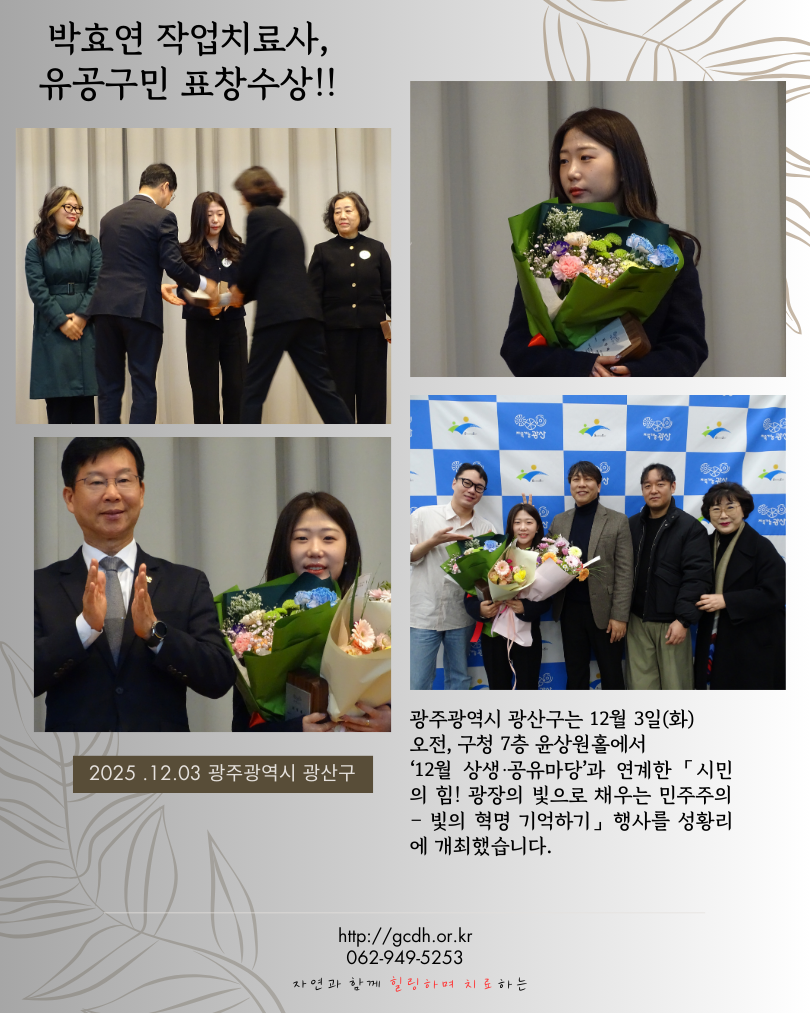 본원 박효연 작업치료사, 유공 구민 표창 수상!!!