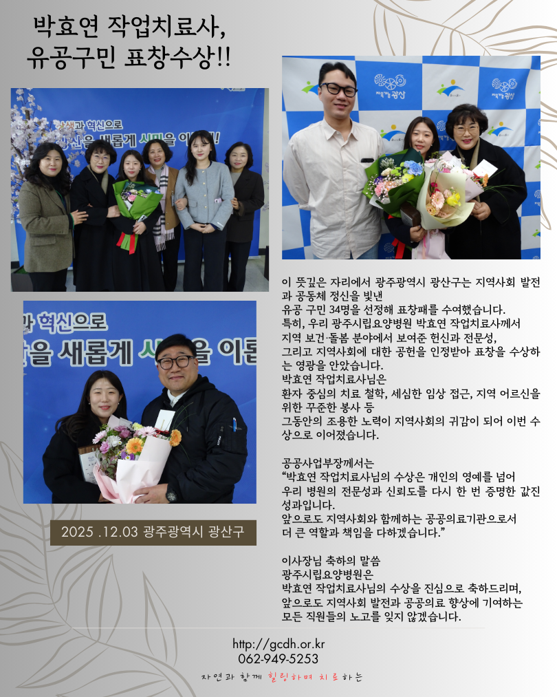 특히, 우리 광주시립요양병원 박효연 작업치료사께서