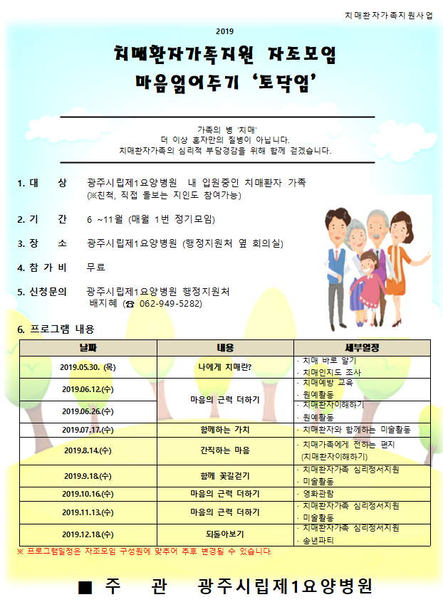 치매환자가족들의 많은 참여와 관심 부탁드립니다.