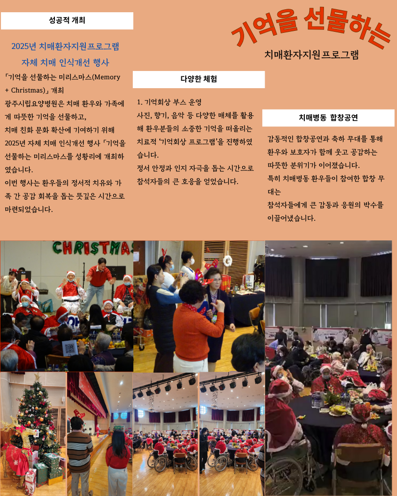 2025년 자체 치매 인식개선 행사 **「기억을 선물하는 미리스마스」를 성황리에 개최하였습니다.