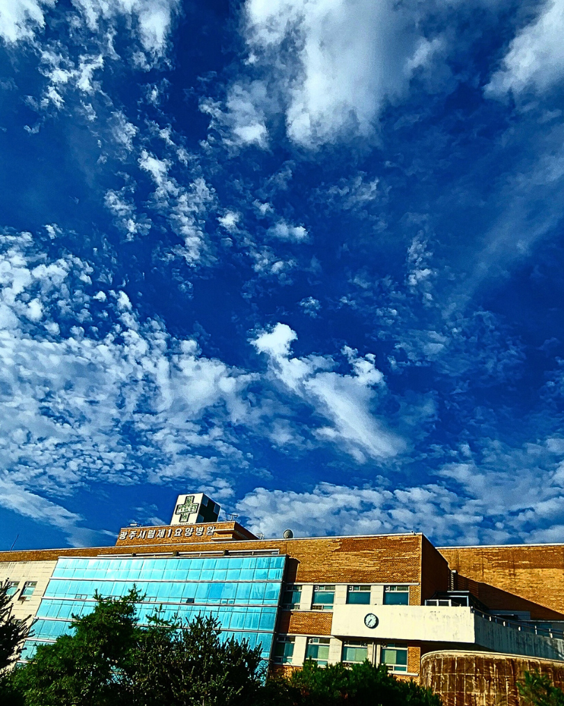 한 줄기 바람이 병원의 유리창을 두드린다.