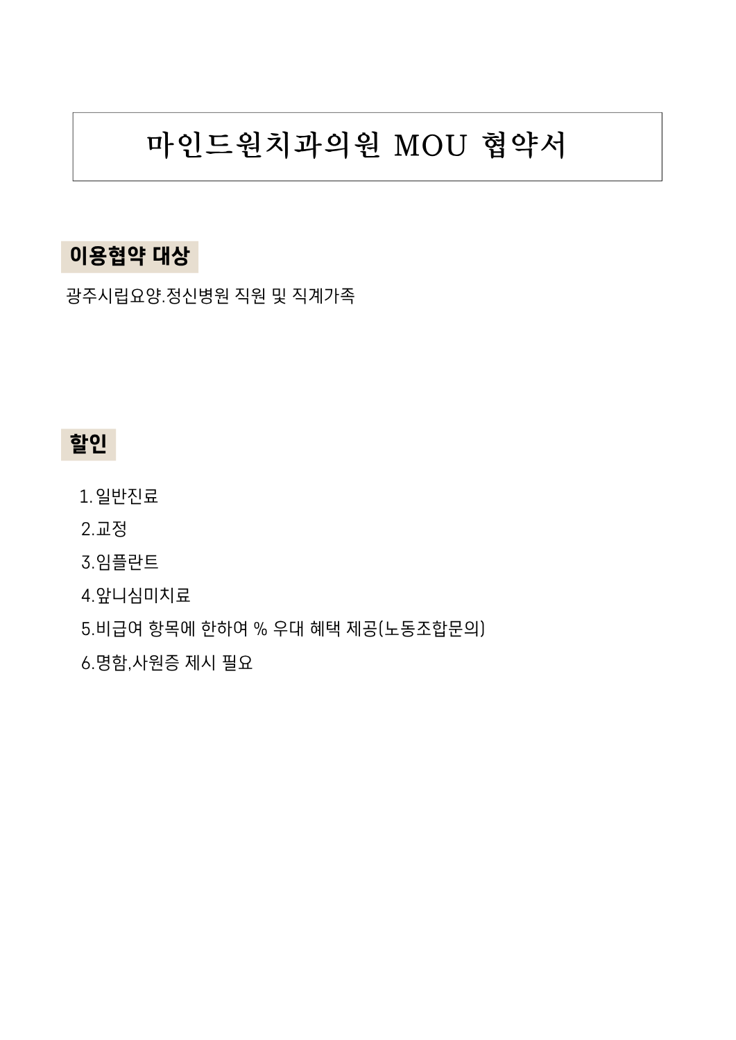 [공지] 마인드원치과의원 MOU 협약 체결 안내