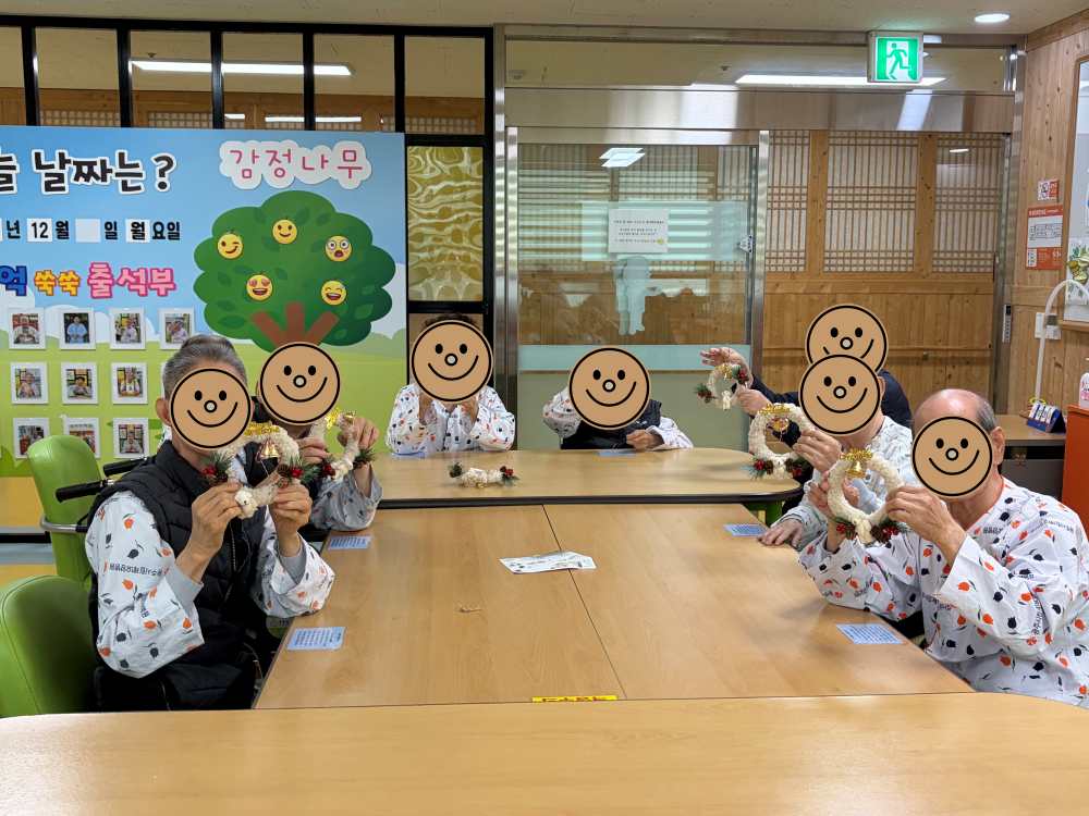 오늘은 어르신들과 복슬 흰 크리스마스 도어벨을 만들었습니다.